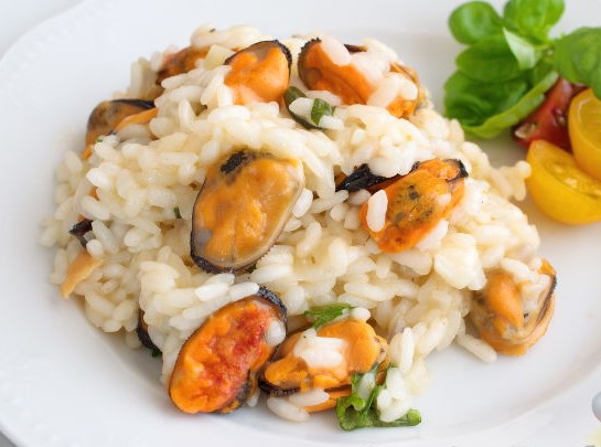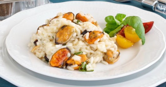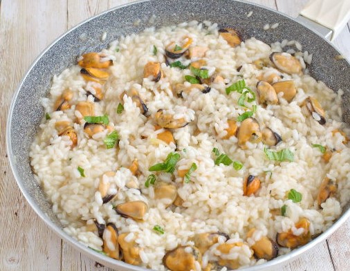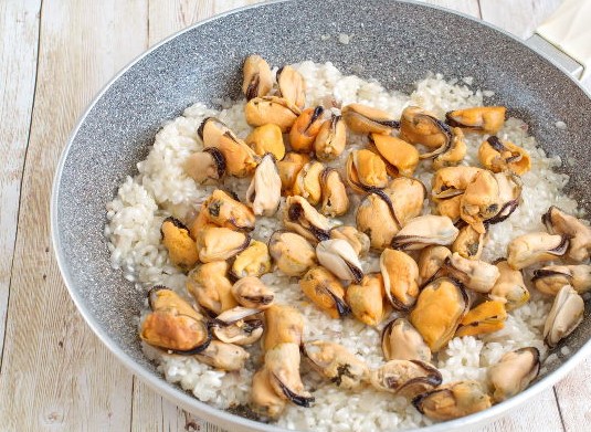 Risotto is a traditional Italian dish that can be cooked with mushrooms, fish, shrimps, chicken, vegetables. Risotto with mussels is a very delicate dish, creamy, aromatic and, moreover, very easy to prepare.
