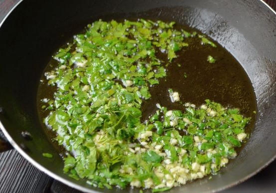 Heat the olive oil in a skillet and fry the garlic and parsley for 3-4 minutes.