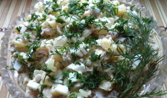 Delicious salad with smoked mackerel for the festive table.
