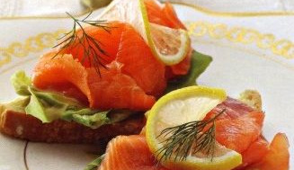 Simple, quick, and delicious sandwiches are made with salmon slices, bread, butter, lemon, lettuce, and mustard sauce.