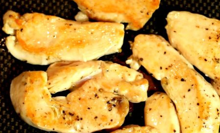 - Fry the chicken breast on one side in a preheated pan.
