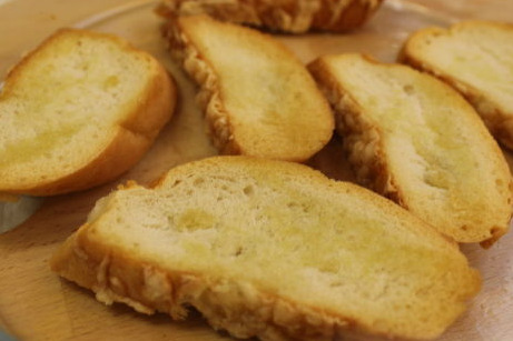 Remove the browned loaf slices from the oven.