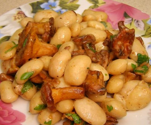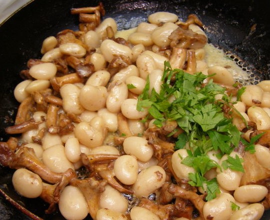 Delicate and fragrant sauté of large beans and wild mushrooms.