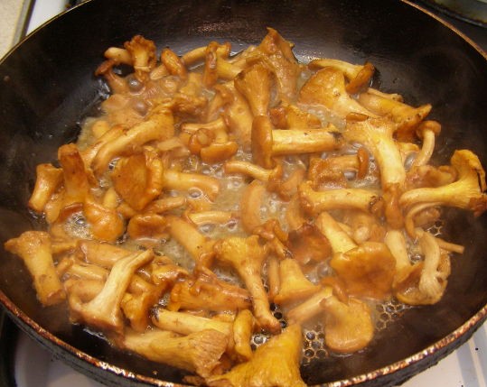 Rinse the mushrooms thoroughly. Large ones can be cut, but remember that mushrooms decrease in size during cooking. Heat vegetable oil in a frying pan. Fry mushrooms over medium-high heat for 20 minutes. Stir from time to time. Salt (0.5 teaspoon).