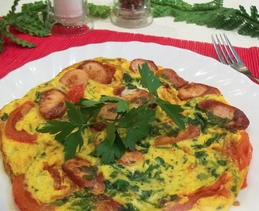 You can sprinkle the cooked eggs with tomatoes and sausages with fresh herbs and serve.