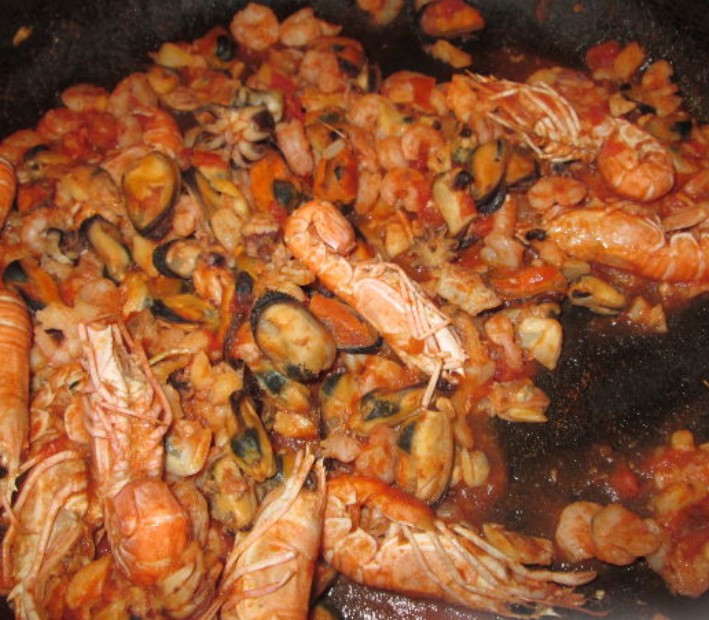 First, prepare the sauce. Fry chopped garlic in olive oil. Add seafood. Sprinkle with wine and let it evaporate. Add a little tomato (tomatoes in their own juice, chopped). Salt and simmer the sauce for about 10 minutes. Pasta, preferably spaghetti or linguine, boil on the tooth, mix with the sauce.