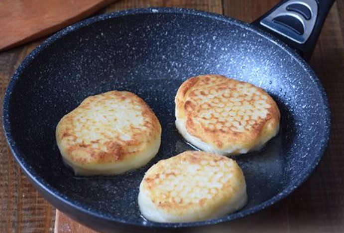 We form round cutlets from the resulting mass. Dip the cutlets in flour.
