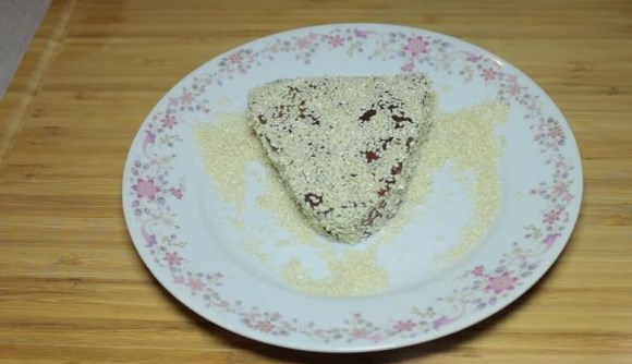 Pour some sesame seeds into a clean plate. Breaded steak covered with the marinade in sesame seeds. We do it slowly, from all sides.