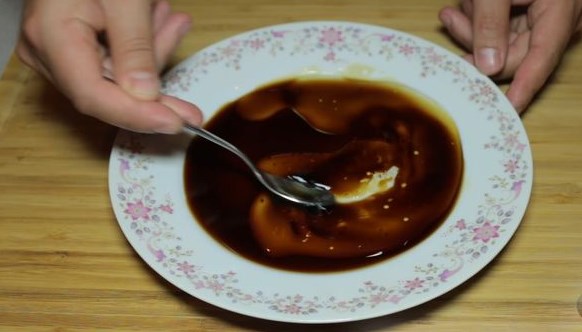Making the simplest tuna marinade. To do this, mix vegetable oil and soy sauce in a 1: 2 ratio. I used 2 tablespoon. tablespoons of vegetable oil and 4 tbsp of soy sauce. Mix the marinade.