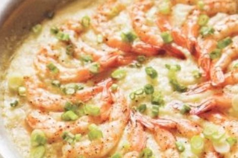 Place the skillet in the oven and bake the shrimp and corn porridge for 5-7 minutes.
