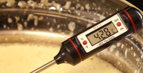 Put the egg-sugar mixture in a water bath and, stirring all the time with a whisk, heat to a temperature of approximately 43 degrees.