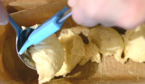 We spread the dough in a muffin, silicone or bread pan, previously covered with parchment paper or greased with butter and sprinkled with flour.