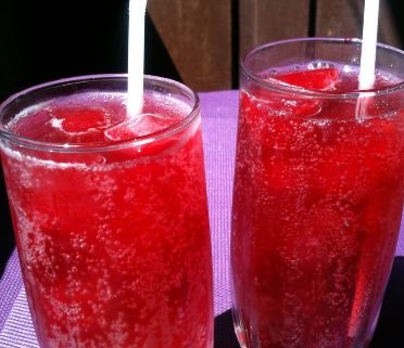 Fizzy is a carbonated refreshing drink. Here’s a recipe for Soda with Plum Ice.