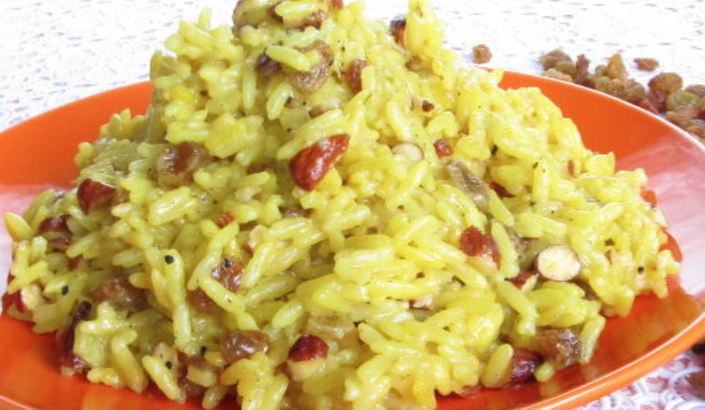 Recipe for spicy rice with raisins and almonds. This oriental dish will be appreciated by lovers of unusual rice dishes.