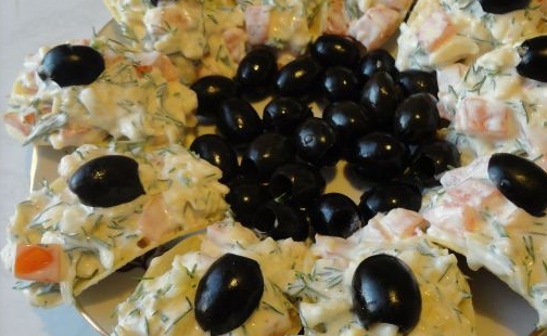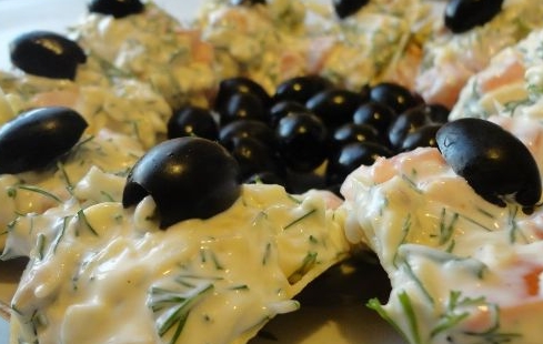 Cooking a spicy snack on chips made from tomatoes, garlic, cheese and herbs. Cold appetizer will decorate any table. An original snack on chips. Prepares quickly, delicious.