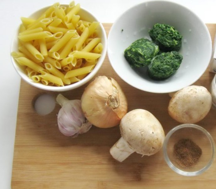 Prepare the ingredients for the spinach and cream pasta.