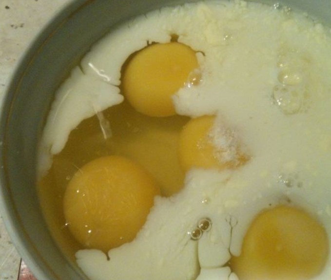 Combine with milk, salt, whisk with a whisk.