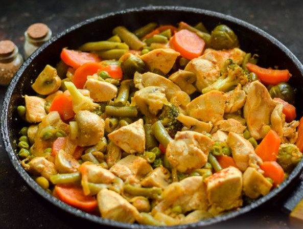 Stew with chicken and mushrooms is a bright, juicy and aromatic dish with a rich taste, which is ideal for lunch or dinner. You can use any vegetables, I used a frozen vegetable mixture that includes broccoli, bell peppers, Brussels sprouts and cauliflower. Frozen peas and green beans also perfectly complement this stew.