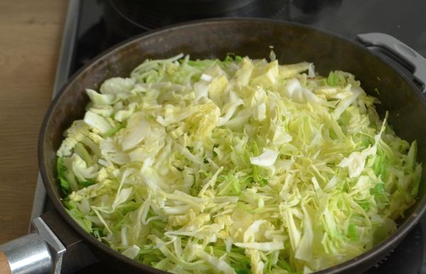 Rinse the cabbage and chop finely with a knife.