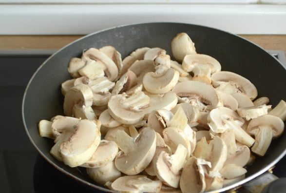 Wipe the mushrooms with a damp tea towel and cut them into slices.