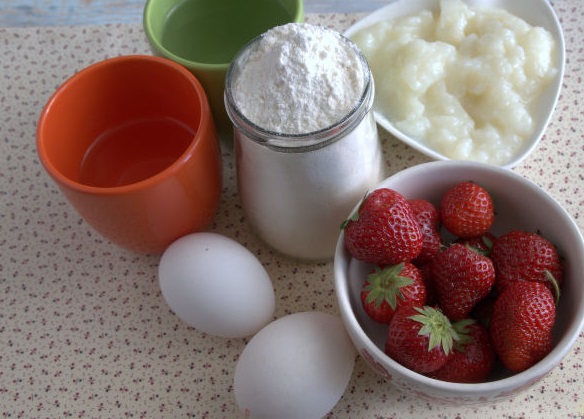 Sprinkle custard cakes with strawberries with powdered sugar. Enjoy your meal!