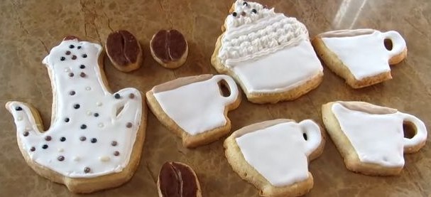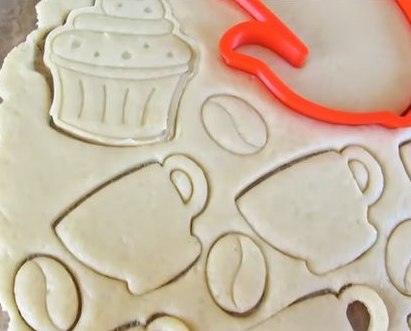 We will use the cookie cutters. Today we will have a coffee theme! We bake sugar cookies in a preheated oven for 15 minutes, temperature – 200 degrees.