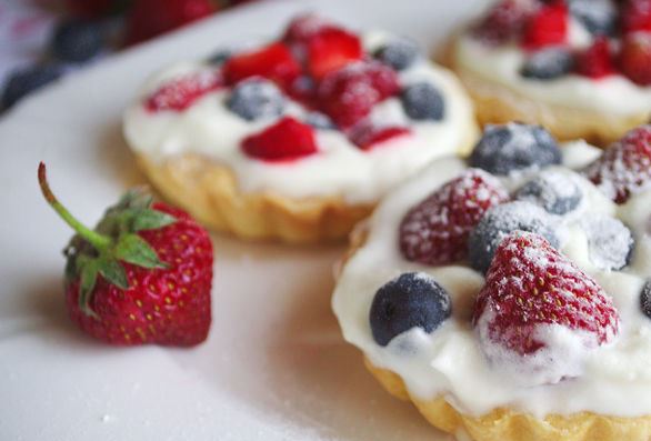 Tartlets with berries β a dessert with a taste of summer. π I liked that sugar is not used in the recipe for the dough for tartlets β¦ The slightly salty crumbly dough only emphasizes the taste of the filling β the creaminess and sweetness of the cream, the freshness of mint and the juiciness of berries