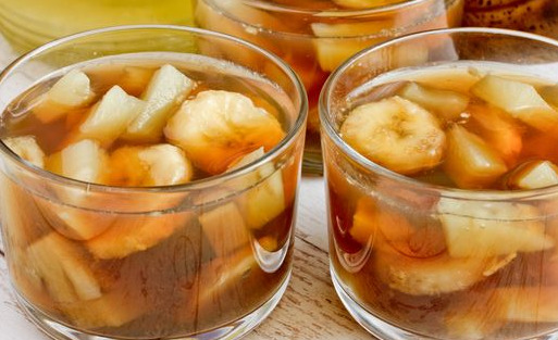 Place glasses of tea jelly with banana and pineapple in the refrigerator until it solidifies completely (about 2 hours).