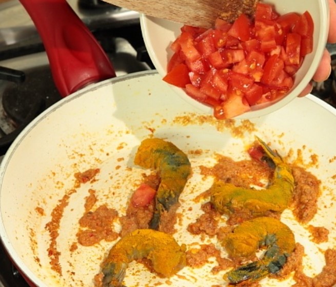 Thai-style shrimps are cooked with a variety of spices. Shrimps, a frying pan and spices are all you need for a feast for the soul. Spice oil frying is used, and then shrimp is added.