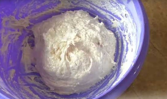 We knead the dough. After a few minutes of kneading, we get a sticky dough. Do not add more flour, we need such a dough. Pour the remaining oil on top and knead a little more. We cover the bowl with a lid and let the dough rest for 30 minutes.