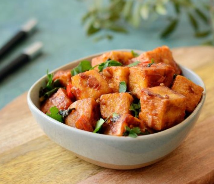 How to cook delicious tofu? Try the chili tofu recipe. It turns out just delicious! Sharp, with a dense crust and soft inside.
