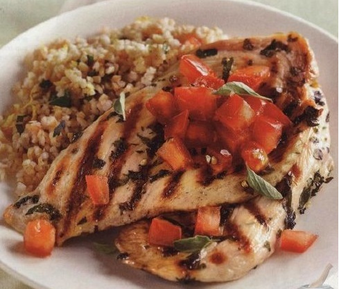 The turkey fillet should be sprinkled with herbs and grilled. Serve fillet well with bulgur and vegetable salad.