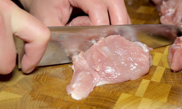 Cut the turkey into portions. The pieces should be medium in size. I highly recommend cutting the turkey fillet so that nothing hangs on the skewers when stringing the pieces. (If you want to get a completely healthy kebab, then take a turkey breast. I shifted the balance between healthiness and taste towards taste and took a turkey thigh fillet. From a turkey thigh, a shashlik turns out to be less useful, but more juicy and tasty.)