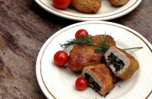 Today we are preparing turkey zrazy with mushrooms and cheese. The secret of their tenderness and juiciness is in adding cream to the minced meat. The aromatic filling of fried mushrooms and grated cheese goes well with dietary turkey meat.