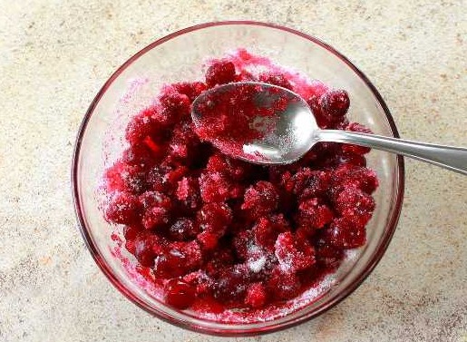 Then heat in a water bath or in the microwave until the grains dissolve, but do not boil. Pour the gelatin into the berry, stir and pour over the crust and cream.