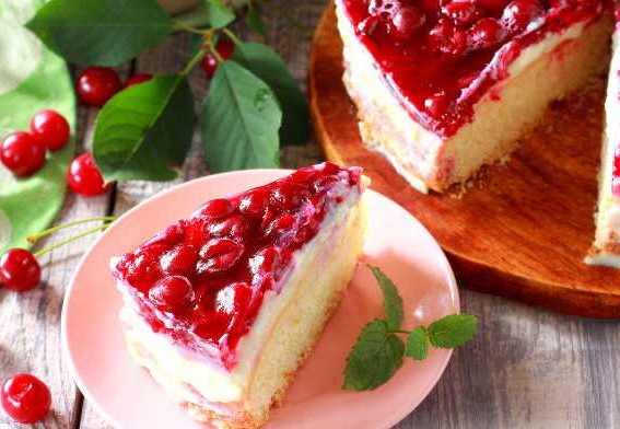 In Tyrolean cherry pie, not the usual shortbread dough, but a soft shortbread cake. Although the pie can be eaten right after the jelly has set, I recommend refrigerating it overnight. If you cut the pie on the same day, the cream, due to its delicate and light consistency, will begin to drip from the cake, and the pieces will not work out perfect.