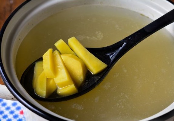 Send the potatoes to the broth with meat and cook for 7-10 minutes over medium heat.