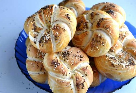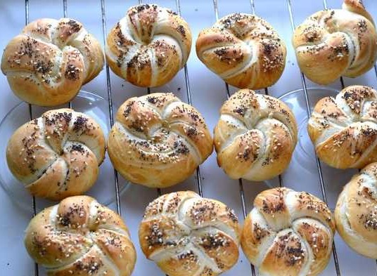 I love savory pastries. What delicious yeast buns according to this recipe! Especially while fresh, still warm! Soft and tender, with a unique aroma, and on top of the buns are covered with delicious cracks. The secret of the appearance of these cracks is in the short-term scalding of the dough with boiling water with the addition of soda. Enjoy cooking!