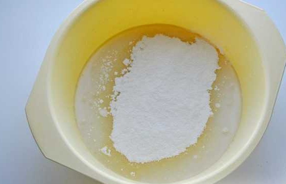 We pour in hot water. We mix. Add salt, vegetable oil and mix the ingredients in a bowl.