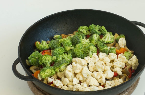 Add broccoli and cauliflower florets. Simmer the vegetable stew with mushrooms for another 5-7 minutes.