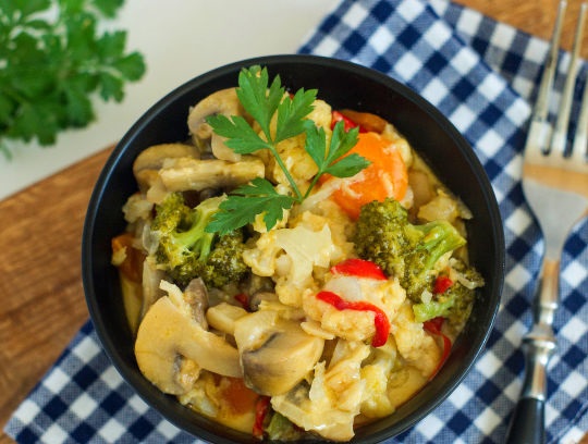 Vegetable Ragout with Mushrooms in Sour Cream Cheese Sauce