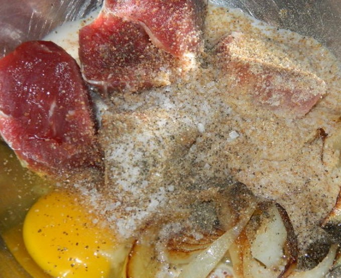- Form the flattened balls from the resulting mass. Toast the chopped steaks in flour.