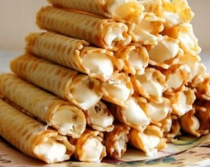 Carefully remove the wafer and roll it up immediately if you plan to fill it with cream. Enjoy your tea