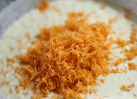 Now grate the carrots very finely and add them to the dough. This will make the waffles brighter and healthier.