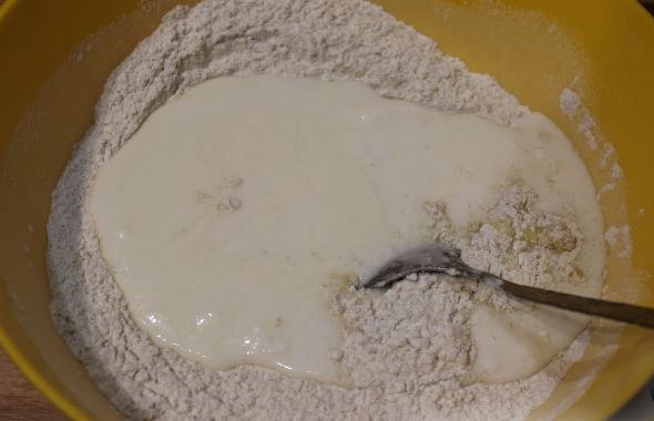 Mix flour with salt and dry yeast. Pour in melted (not hot) butter and yogurt. Knead the dough.