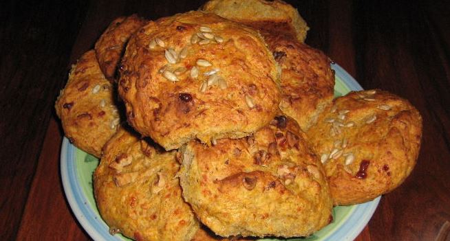 We bake bread from whole grain flour at 200 g for about 30-40 minutes. Wholegrain bread made with carrots.
