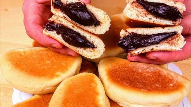 The chocolate custard yeast buns are soft, tasty and have a lot of cream inside. I cooked in two pans, overcooked everything in one go.