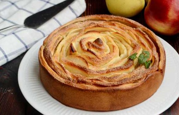 Apple pie can be not only tasty, but also beautiful.) The yeast dough is laid out in strips in the form, alternating with thinly sliced apples. Such a cake will definitely attract the attention of guests, and by the end of the holiday there will be no crumbs left from the cake!
