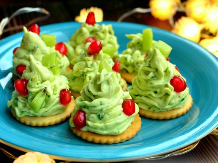 Spread the mixture onto a cracker, forming an impromptu Christmas tree.