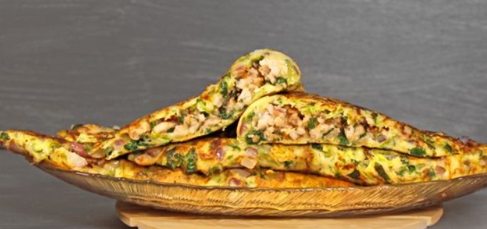 Put the filling on one half of the pancake, not in a thick layer, and leaving 1.5 centimeters on the edges for sticking them together. Fry them until the bottom surface of the pancake is lightly browned.